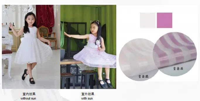 المادة الفوتوكرومية هي مادة مسحوقة فوتوكرومية يتم تصنيعها عن طريق تغليف الأصباغ الفوتوكرومية في كبسولات دقيقة من خلال عمليات خاصة، يمكنها امتصاص طاقة ضوء الشمس (الأشعة فوق البنفسجية) بعد تشعيعها بأشعة الشمس (الأشعة فوق البنفسجية)، مما يؤدي إلى تغييرات في البنية الجزيئية، مما يؤدي إلى تغيرات في أطوال موجات الامتصاص، مما يؤدي إلى تغيرات في اللون؛ عند فقدان طاقة ضوء الشمس (الأشعة فوق البنفسجية)، فإنها تعود إلى تركيبها الجزيئي الأصلي وتستعيد لونها الأصلي. مميزة: